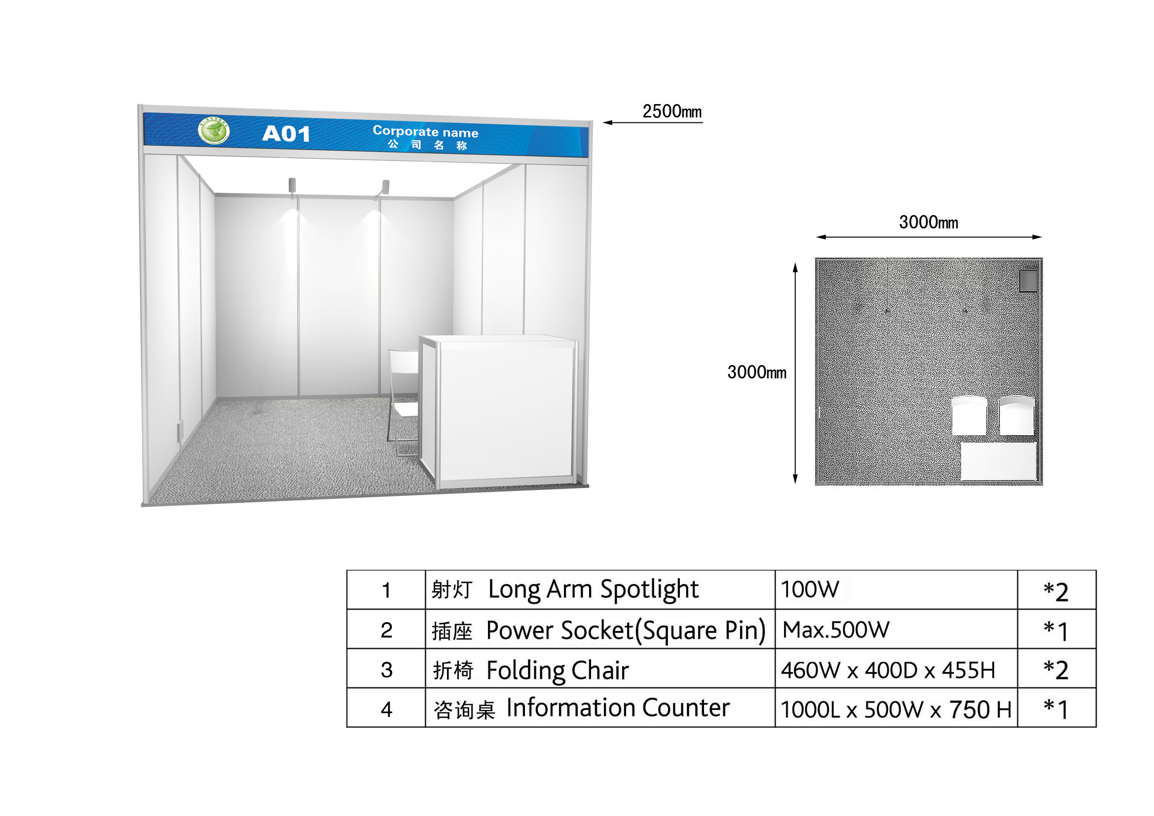 (1)標(biāo)準(zhǔn)展位:3米×3米,配備電源、展示桌一張、椅子兩把、射燈一個(gè),國內(nèi)展商5600元人民幣/個(gè),境外展商1200美元/個(gè)。