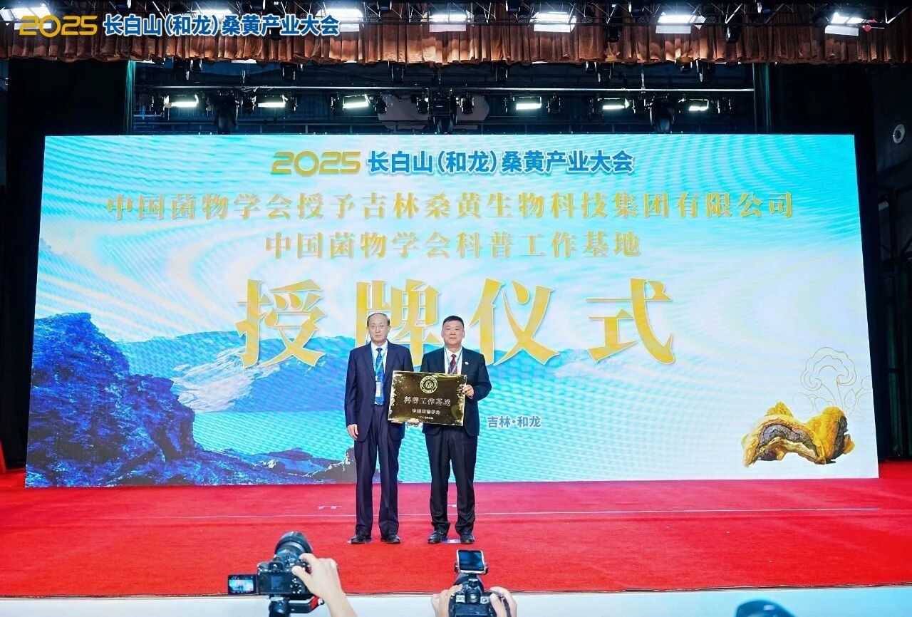 開幕式上,中國菌物學會向吉林桑黃生物科技集團有限公司授予“中國菌物學會科普工作基地”牌匾,吉林省菌物學會向和龍市授予“吉林省桑黃之鄉(xiāng)”牌匾。