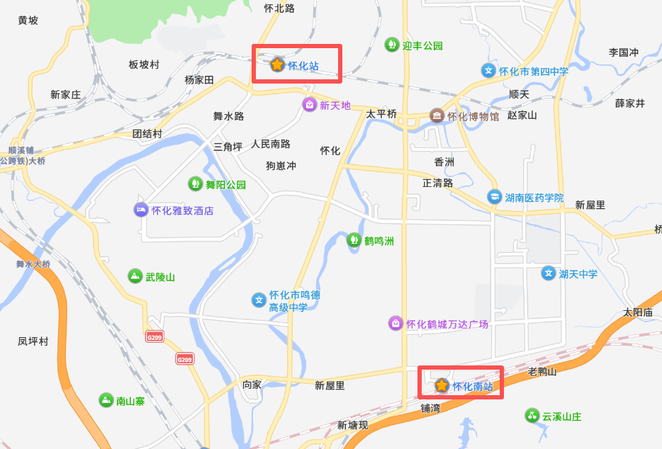 車站大巴需前往懷化綜合樞紐客運站乘坐,無法選擇上下車地點。懷化站至懷化綜合樞紐客運站可打車(距離約7.1公里,20元,預(yù)計用時約為18分鐘),懷化南站至懷化綜合樞紐客運站步行即可。