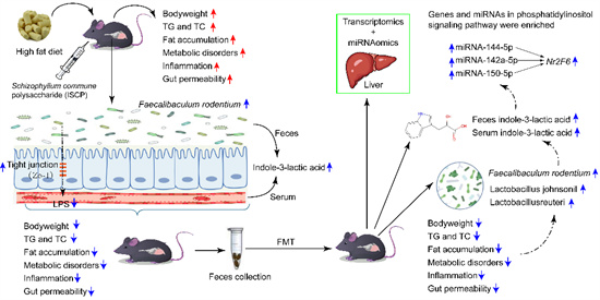 近日,湖北省農(nóng)科院高虹團(tuán)隊(duì)在國際學(xué)術(shù)期刊Carbohydrate Polymers (中科院一區(qū)TOP期刊,IF=12.5)上發(fā)表了題為“Schizophyllum commune polysaccharide ameliorates diet-induced obesity by regulating the Faecalibaculum rodentium/indole-3-lactic acid/microRNA axis”的研究論文,揭示了裂褶菌多糖通過嚙齒糞桿菌/吲哚-3-乳酸/microRNA途徑減輕飲食誘導(dǎo)的肥胖作用機(jī)制,為食用菌多糖的產(chǎn)業(yè)化應(yīng)用提供了新的理論依據(jù)。