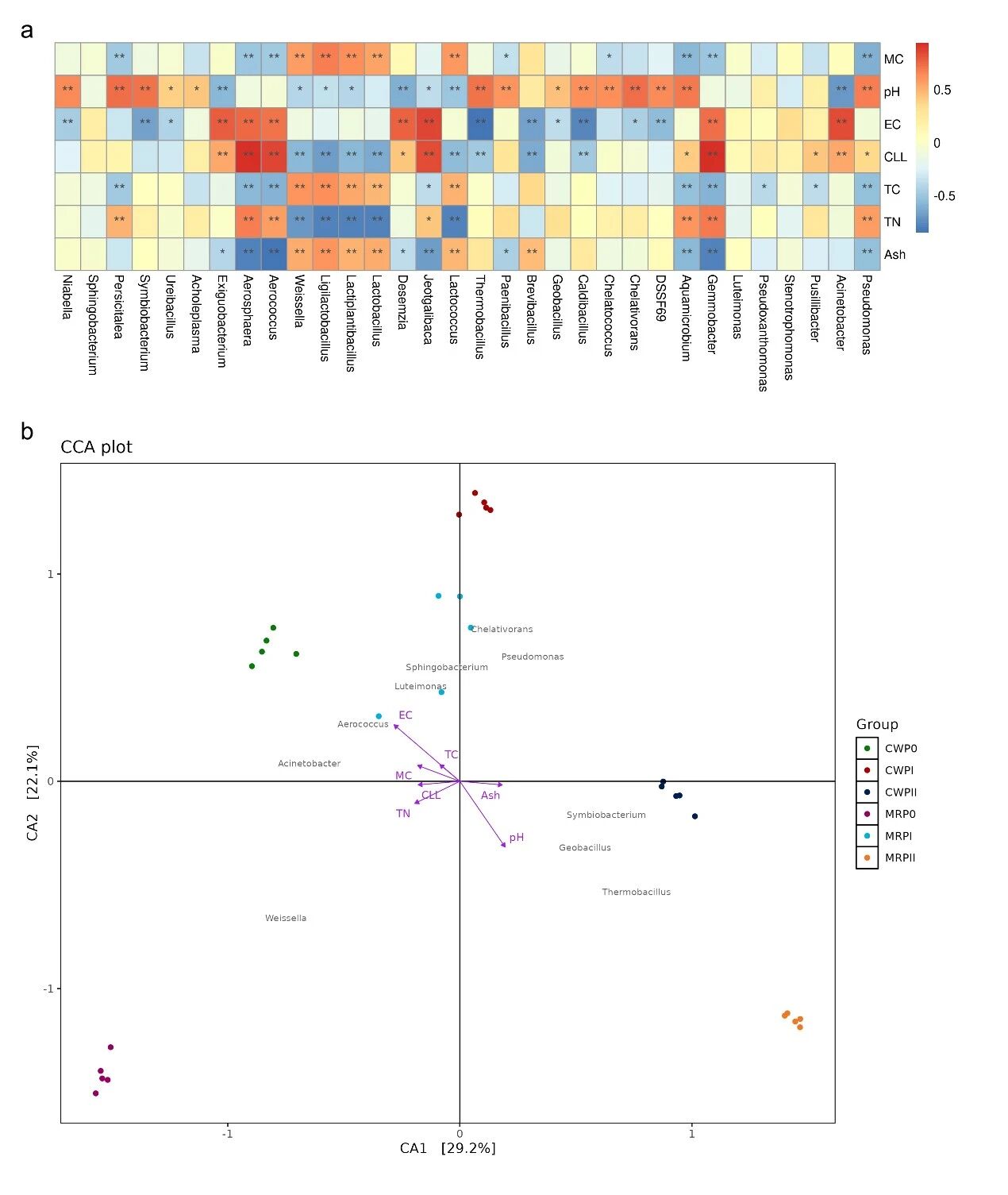 實(shí)驗(yàn)采用棉籽殼和石灰(97:3)作為對(duì)照,對(duì)比分析鹿茸菇菌渣和稻草以及石灰(50:47:3)作為原料時(shí),其生物學(xué)轉(zhuǎn)化效率的差異,并利用16S rRNA基因測(cè)序技術(shù)分析了從堆肥發(fā)酵到草菇收獲六個(gè)階段的基質(zhì)中細(xì)菌群落的變化,結(jié)合功能預(yù)測(cè)工具評(píng)估微生物代謝途徑,同時(shí)測(cè)定了相關(guān)的理化指標(biāo)。研究發(fā)現(xiàn):MR中木聚糖酶活性比CW中的高,而纖維素酶活性則比CW中的低。在整個(gè)生產(chǎn)過程中,兩種配方的細(xì)菌群落結(jié)構(gòu)都發(fā)生了顯著變化。指示物種分析顯示,在發(fā)酵過程中,MR 和 CW 堆肥的細(xì)菌多樣性變化模式不同。代謝功能分析表明,碳水化合物和氨基酸代謝在整個(gè)過程中保持相對(duì)活躍。同時(shí)發(fā)現(xiàn),MR和CW的生物學(xué)轉(zhuǎn)化效率無顯著性差異,但MR的成本更低。該研究結(jié)果表明鹿茸菇菌渣可以用作草菇生產(chǎn)的原料,這不僅解決了食用菌菌渣的處理和處置問題,同時(shí)大幅降低了草菇的生產(chǎn)成本,提升了經(jīng)濟(jì)效益,推動(dòng)了農(nóng)業(yè)廢棄物的資源化利用,助力可持續(xù)農(nóng)業(yè)的發(fā)展。