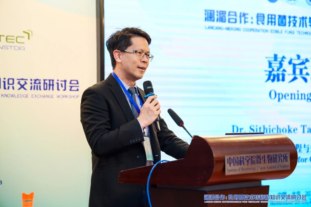 開幕式由中國科學(xué)院微生物研究所研究員趙瑞琳主持,微生物多樣性與資源創(chuàng)新利用全國重點實驗室主任、中國科學(xué)院微生物研究所菌物標本館館長蔡磊,泰國國家遺傳工程與生物技術(shù)中心副主任Sithichoke Tangphatsornruang 致辭。雙方一致認為:食用菌產(chǎn)業(yè)作為農(nóng)業(yè)循環(huán)經(jīng)濟的重要組成部分,在促進農(nóng)民增收、保障糧食安全等方面發(fā)揮著不可替代的作用。中國作為全球最大的食用菌生產(chǎn)國,在育種、栽培、加工等領(lǐng)域積累了豐富經(jīng)驗,愿意與瀾湄國家共享技術(shù)成果,實現(xiàn)互利共贏。