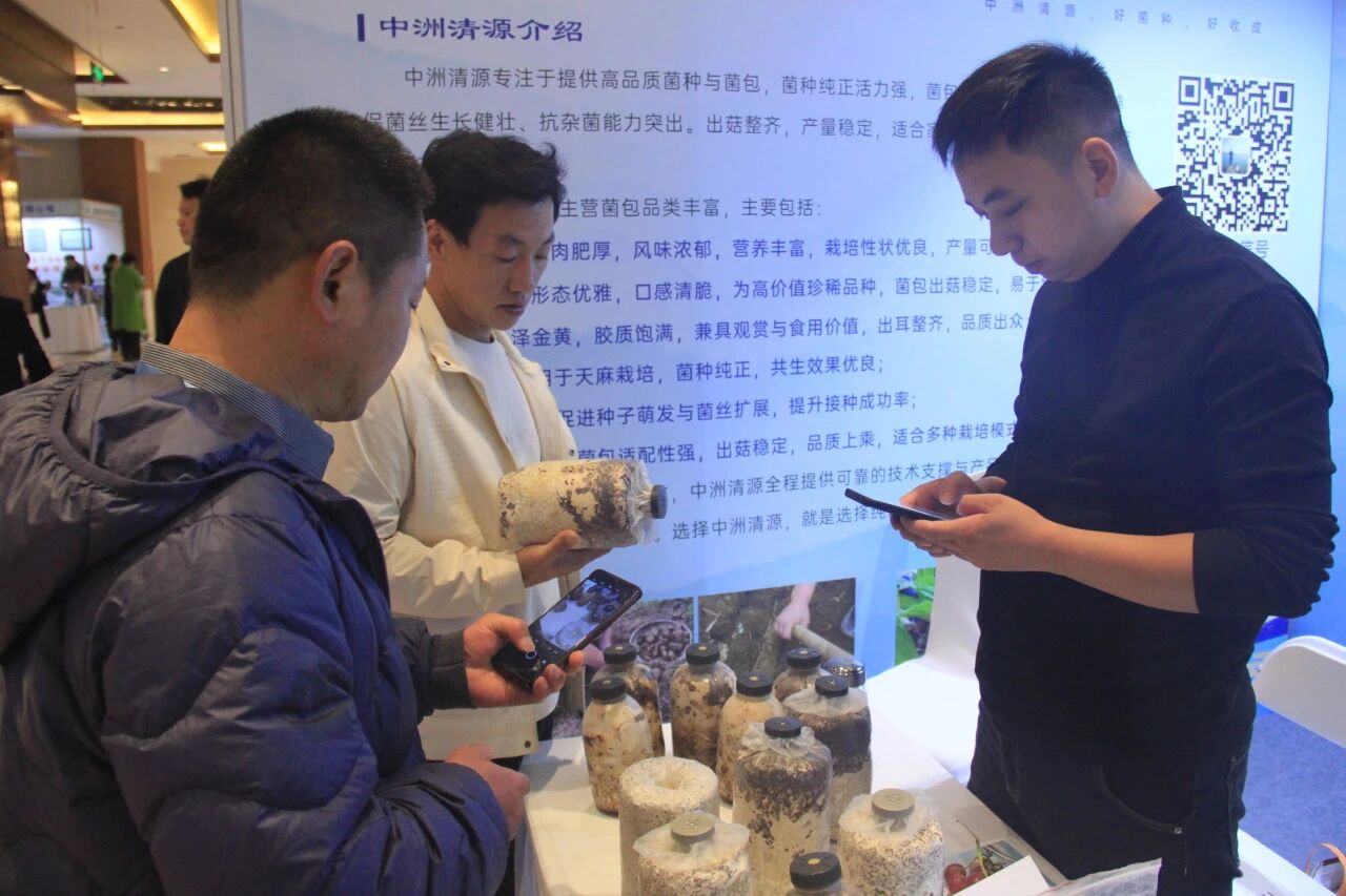 菌種展臺前,種植戶踴躍咨詢下單。