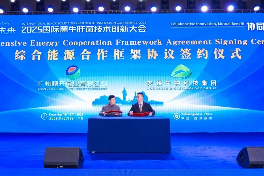 【核心提示】:2025年12月16—17日,“新時(shí)代·新未來——2025國際黑牛肝菌技術(shù)創(chuàng)新大會(huì)”在云南西雙版納召開。在大會(huì)的“協(xié)同創(chuàng)新,合作共贏”環(huán)節(jié)中,兩項(xiàng)關(guān)鍵戰(zhàn)略合作正式達(dá)成,分別涉及農(nóng)業(yè)科技與智能制造的深度融合,以及綠色能源基礎(chǔ)設(shè)施建設(shè)。這些合作標(biāo)志著黑牛肝菌產(chǎn)業(yè)在科技創(chuàng)新和綠色可持續(xù)發(fā)展方面邁出了重要步伐,為產(chǎn)業(yè)的進(jìn)一步擴(kuò)張?zhí)峁┝撕诵募夹g(shù)和能源保障。